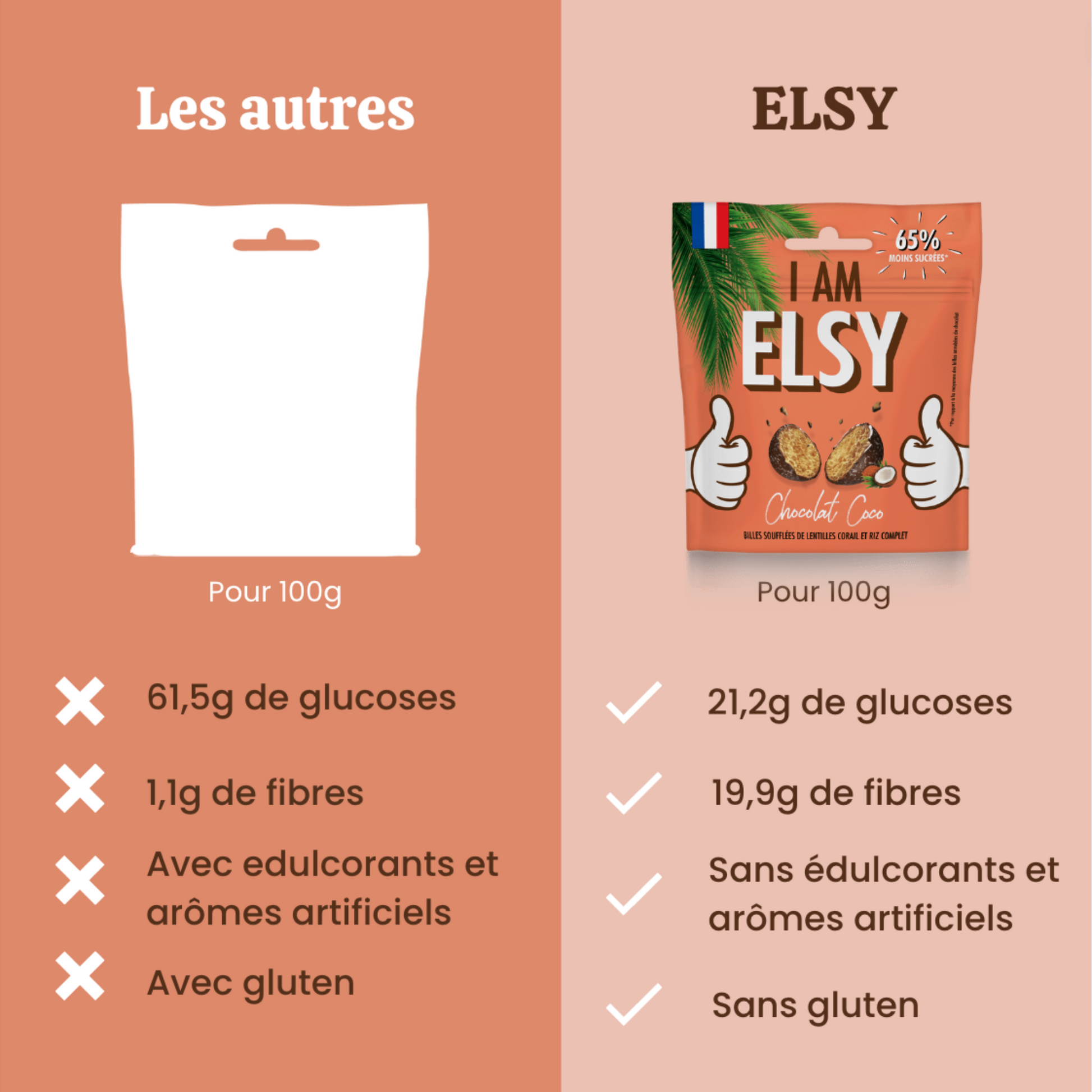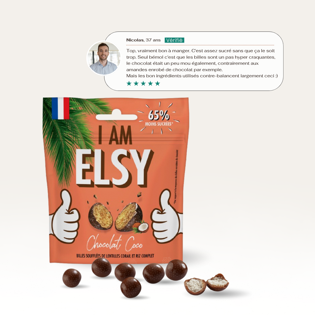 Avec 65% de sucres en moins et 9× plus de fibres, Elsy réinvente le chocolat.
